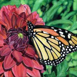 Monarch on Dahlia – note card