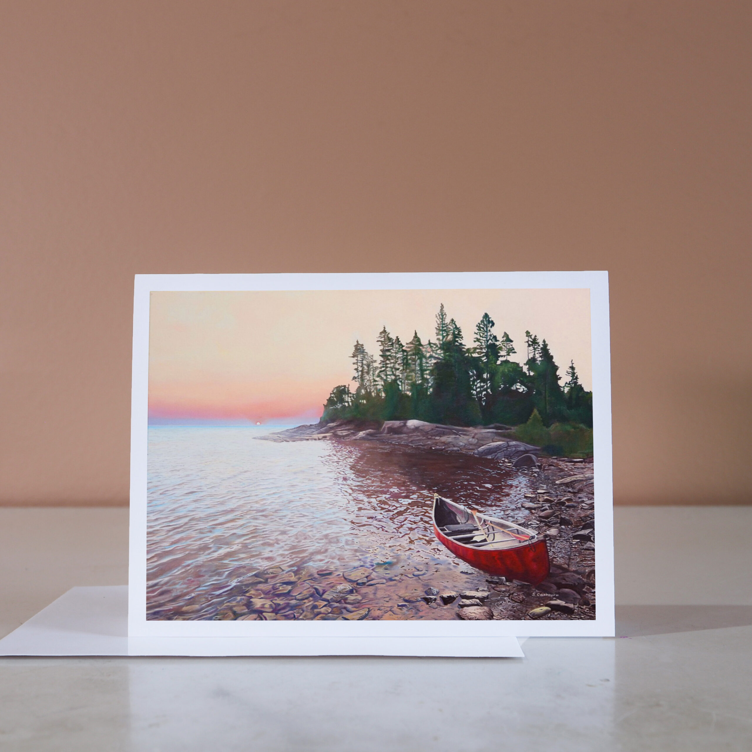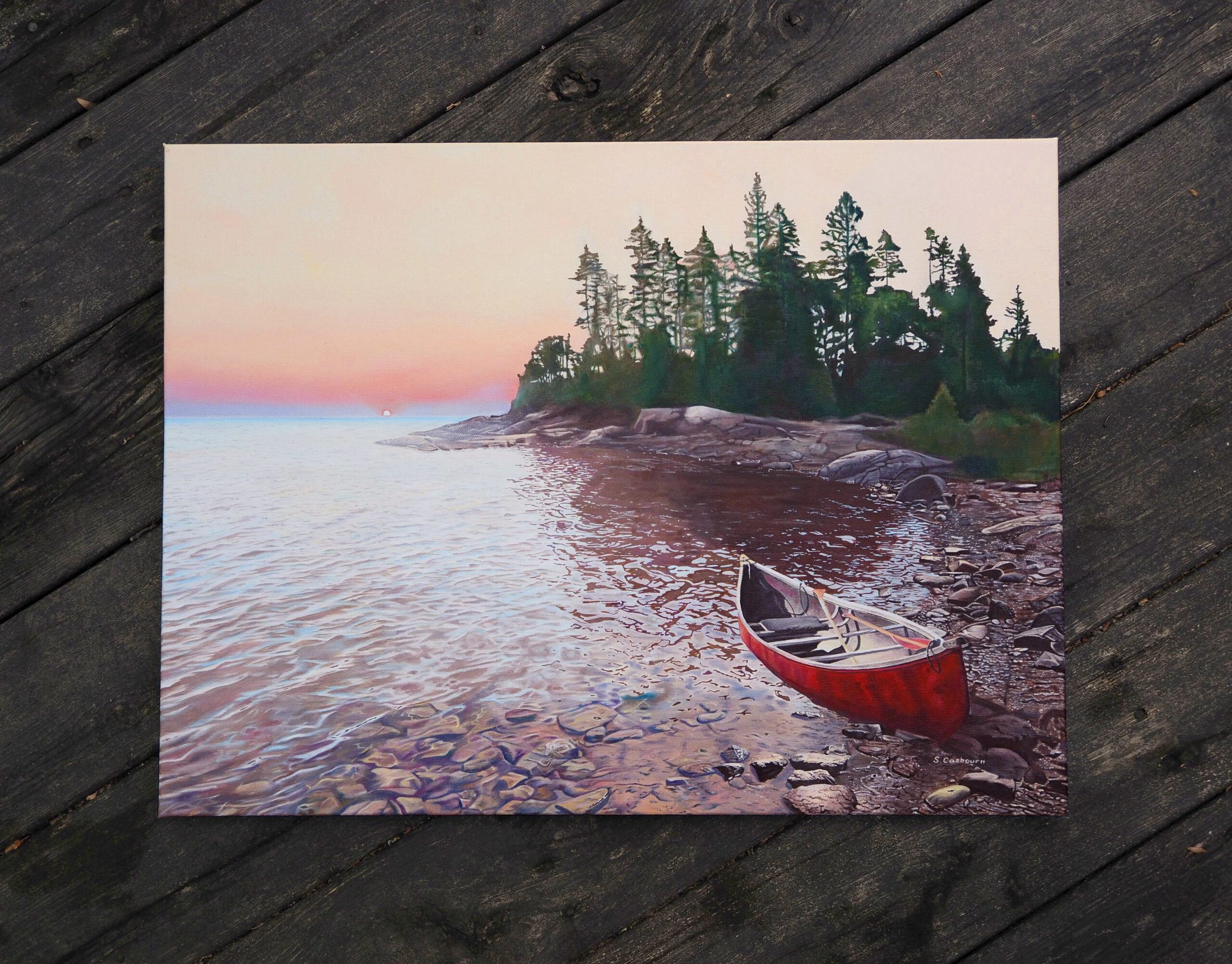 original artwork a commissioned painting of a canoe at sunrise