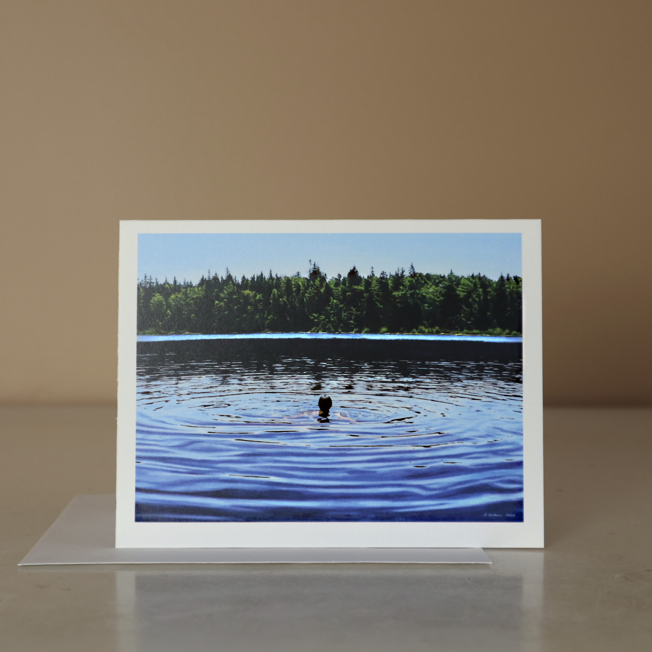 original painting of a swimmer enjoying a reprieve from a hot summer’s day