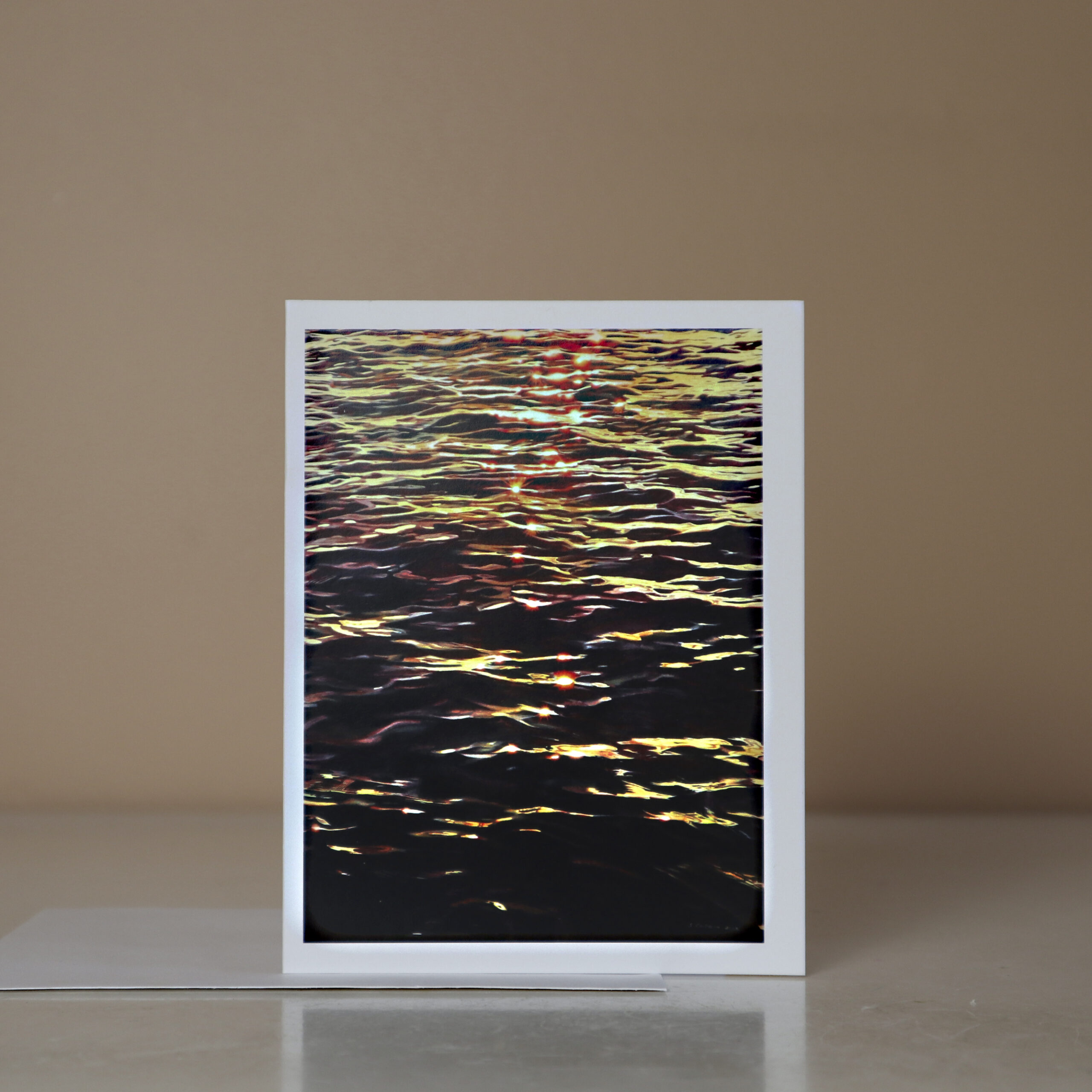 original painting featuring a sunset sparkling on gently rippling water